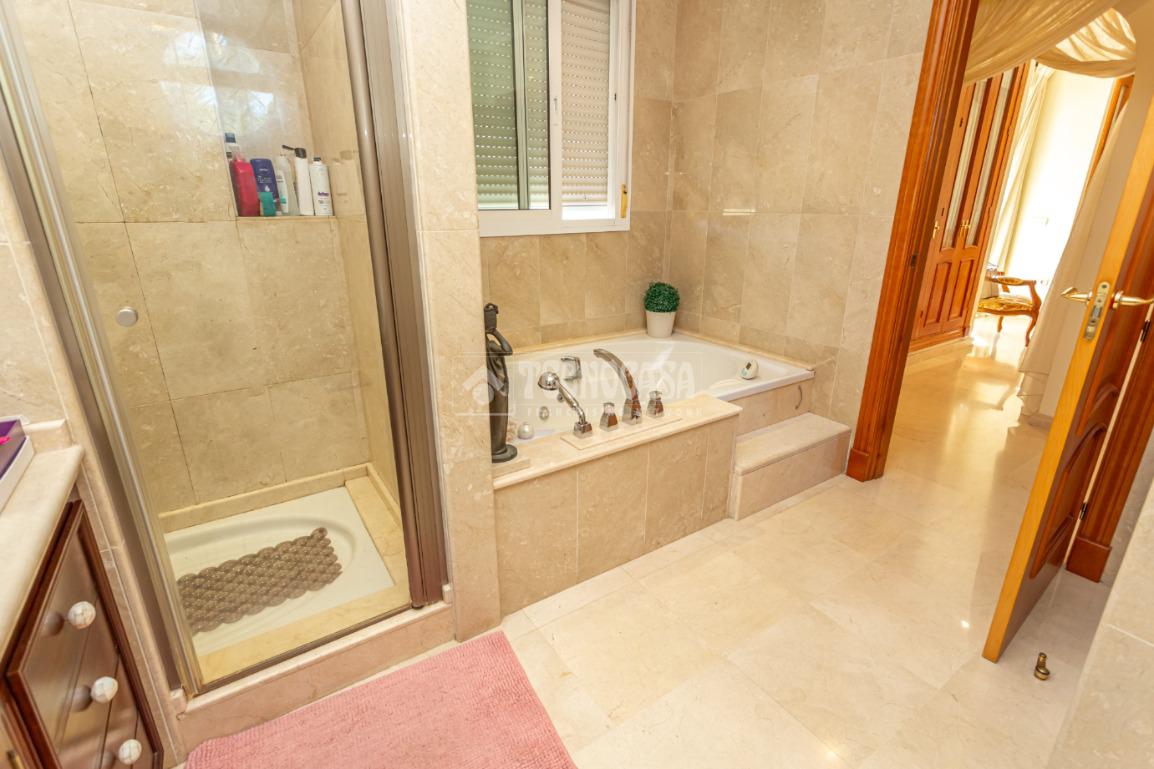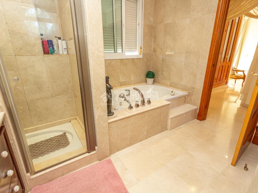 La planta superior está dedicada por completo a un espectacular dormitorio principal tipo suite que ocupa toda la planta, convirtiéndose en un auténtico refugio privado. Dispone de una magnífica terraza exclusiva y un elegante baño con jacuzzi y ducha independiente, pensado para disfrutar de momentos únicos de relax y desconexión.